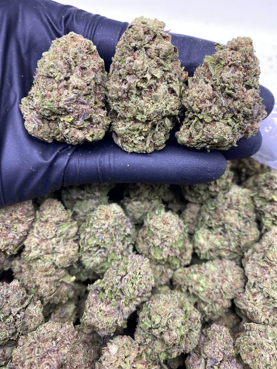Expect dense, resinous buds with eye-catching hues of green, purple, and orange. Each nug looks like it’s been dusted with sugar crystals, shining under the light with sticky trichomes that promise an unforgettable smoke.
